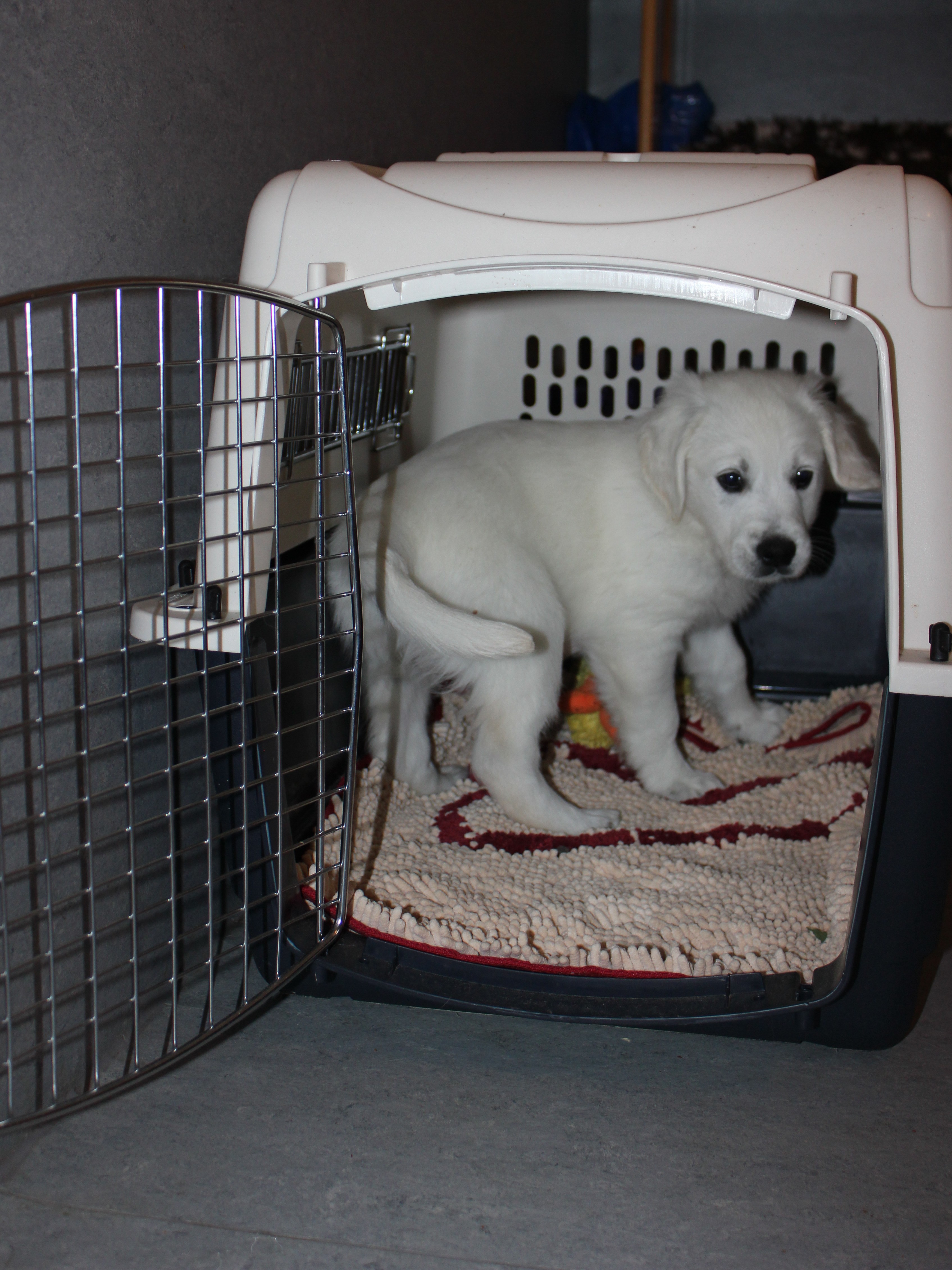 Bei der Ankunft im neuen Heim gilt es, den Welpen in seinem Tempo die neue Umgebung erkunden zu lassen. Der Welpe hat mit einem Schlag seine Mutter, seine Geschwister, seine Zuhause, seine gewohnten Menschen und alle vertrauten Abläufe verloren. Daher müssen wir sehr behutsam und mit viel Einfühlungsvermögen agieren. Will der Welpe an dem Tag nicht fressen, ist das kein Problem. Wenn er winselt, seien Sie einfach für ihn da, ohne sich aufzudrängen. Gestalten Sie die ersten Tage so stressfrei wie möglich ohne zusätzliche Besucher oder sonstige "Highlights".